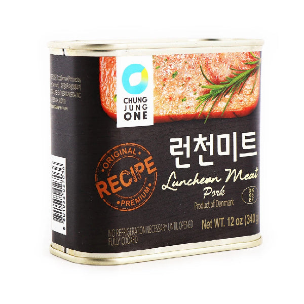 Korean food brand Chung Jung One (CJO) offers tinned Luncheon meat in 340g quantity. This pork meat-based food is very tasty and also uses onion, sugar and water among its ingredients.